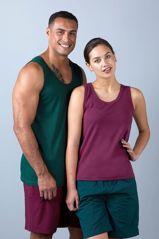 100% combed cotton, Durable 180gsm weight, Strong double stitch binding on neck and armholes, Double stitch hem, Standard length can be worn loose or tucked.