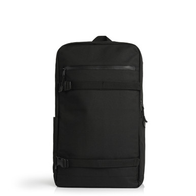 Large main compartment, external YKK zip pocket, internal padded laptop sleeve, board straps on bag face, internal metal mesh window, with key chain attachment